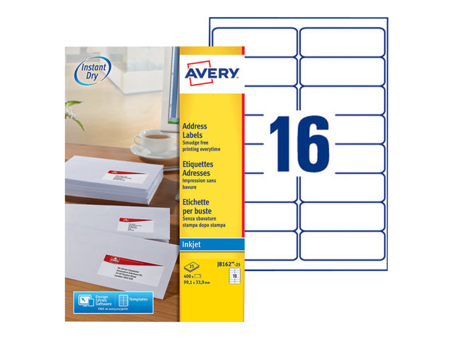 Summary Details: Avery address labels 400 labels 99.1 x 33.9 mm