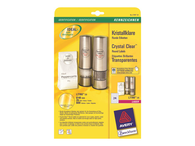 Summary Details: Avery labels glossy 600 labels 40 mm round